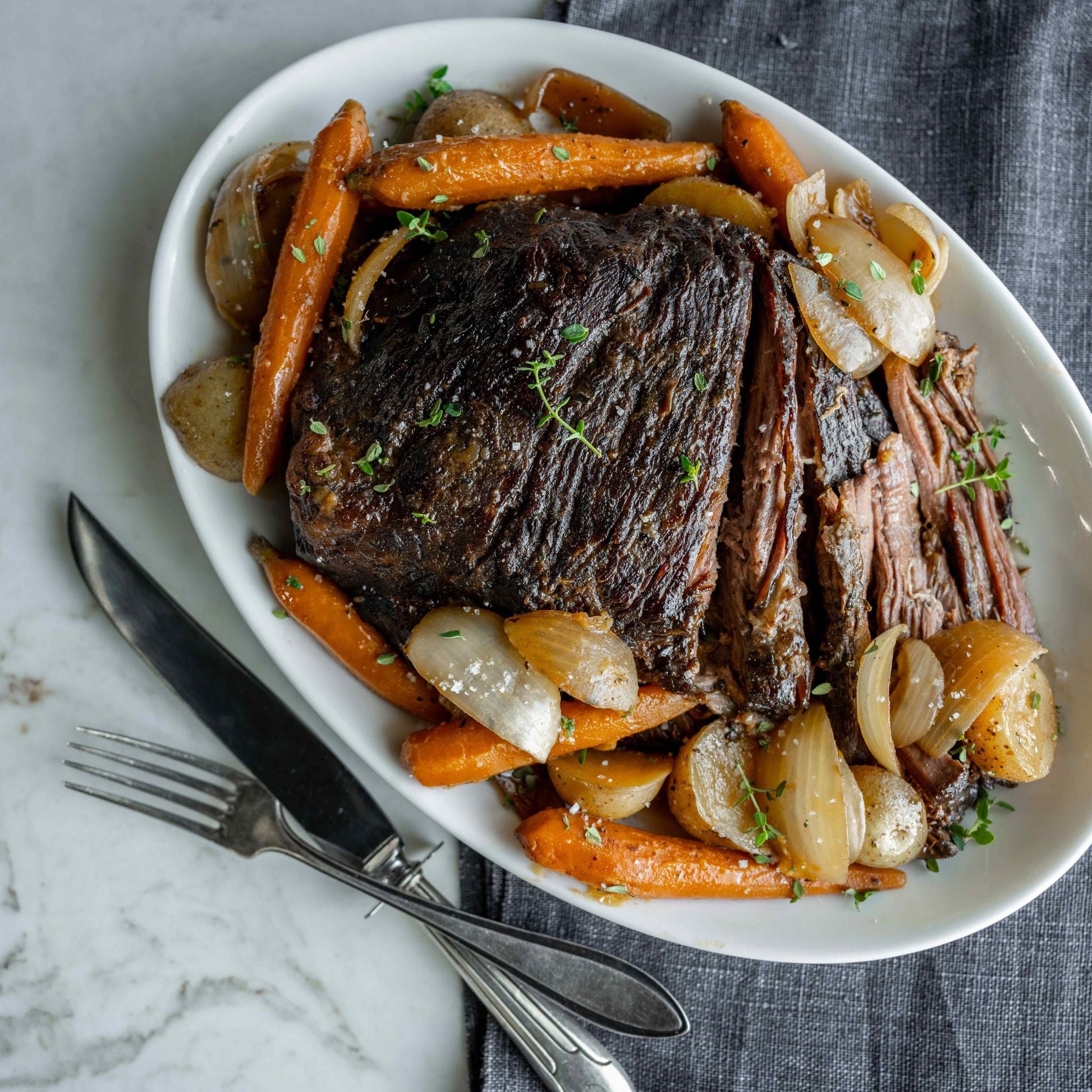 Our ranch hands love this cut for shredded tacos, Italian Sunday Sauce, and the internet-famous Mississippi Pot Roast. Whatever you choose, this meal will bring your people in and keep them there long after the plates are cleared.