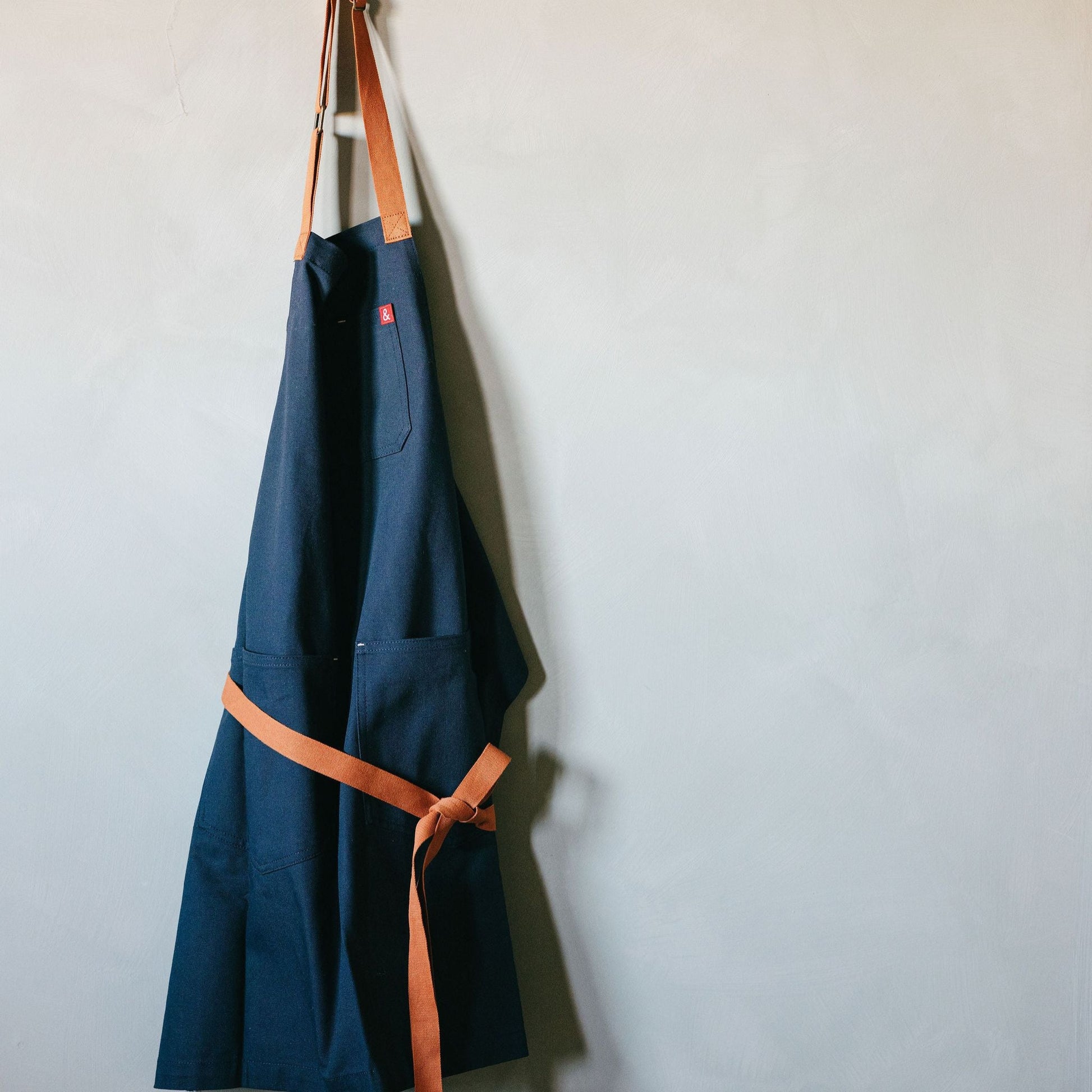 Pardon our french but they're called damn good aprons for a reason. Professional-grade and made to last, this apron features adjustable straps, durable cotton canvas, and a tailored fit. Midnight blue for a clean, classic look.