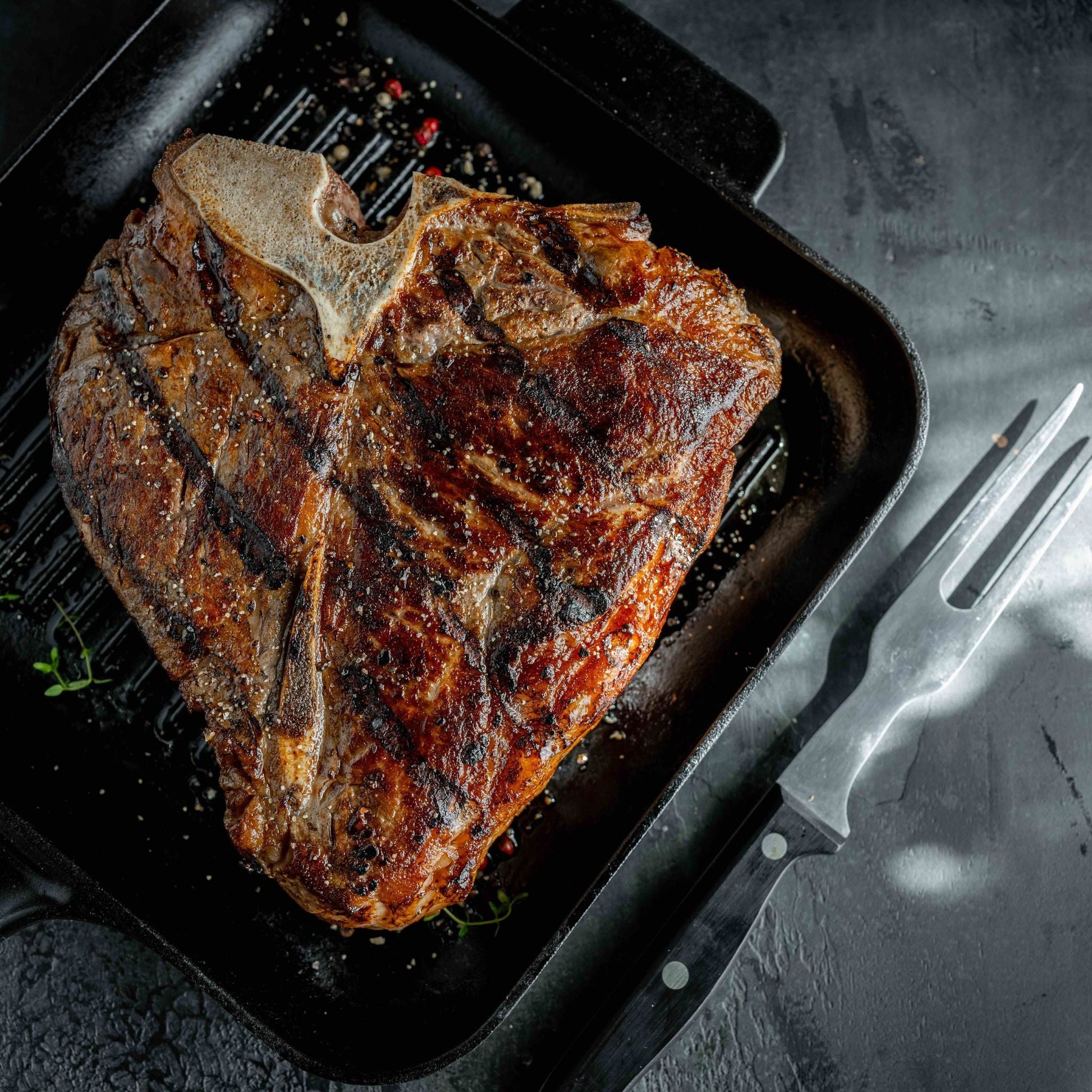 The T-Bone is more than a steak -- it’s a legend. Cut from the short loin of our pasture-raised Black Angus cattle, it combines two iconic cuts in one: the bold, beefy New York Strip and the buttery-soft filet mignon, connected by a bone that adds a hefty dose of swagger.