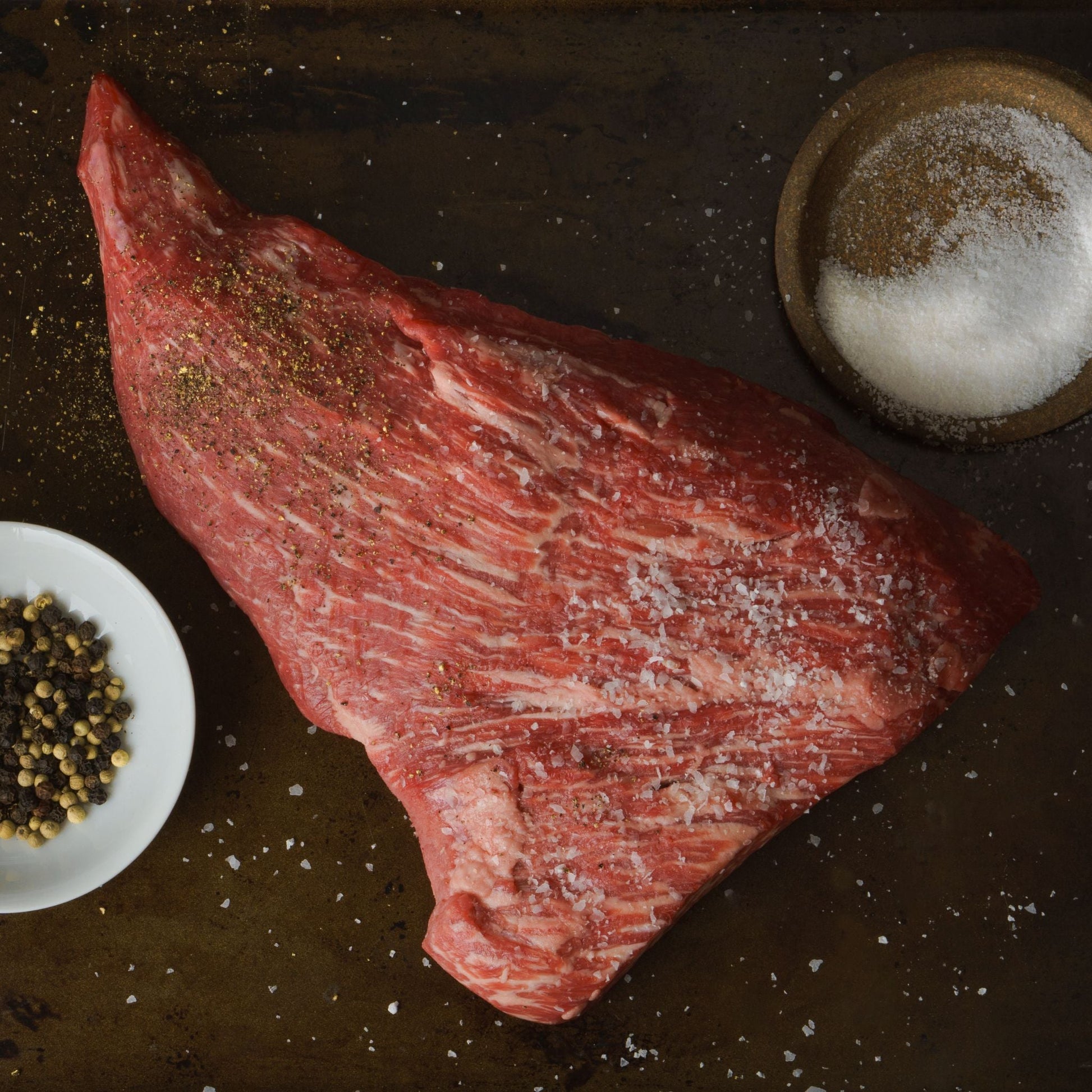 Originally made famous on the Central Coast of California, the tri-tip has earned its reputation as a true crowd-pleaser. Cut from the bottom sirloin of our pasture-raised Black Angus cattle, it’s known for its signature triangular shape, rich marbling, and bold, beef-forward flavor.